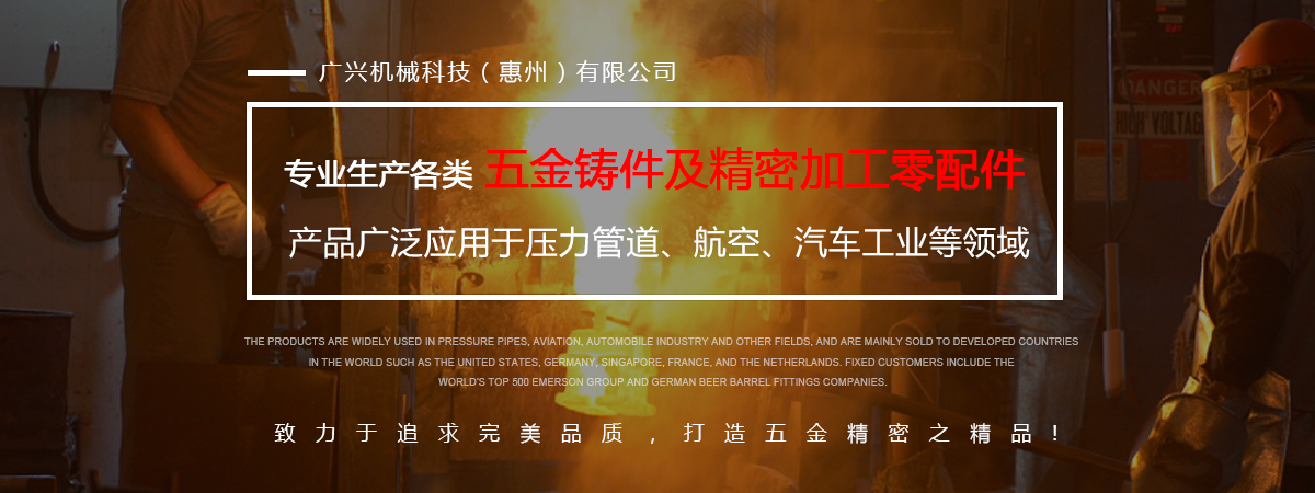 公司專業生產各類五金鑄件及精密加工零配件,可熔煉材質為全系列不銹鋼及碳鋼,主要生產材質有304、316、316L、17-4、430409等,年生產各種不銹鋼鑄件1000余噸。產品廣泛應用于壓力管道、航空、汽車工業等領域,主要銷往美國、德國、新加坡、法國、荷蘭等世界發達國家,固定客戶有世界500強艾默生集團及德國啤酒桶配件公司。